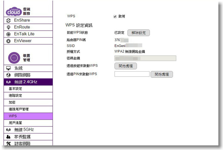 ▲『WPS』可以讓無線網卡和無線設備快速的單鍵設定完成,所以需在此設定WPS狀態與密碼金鑰等