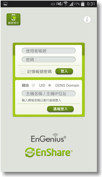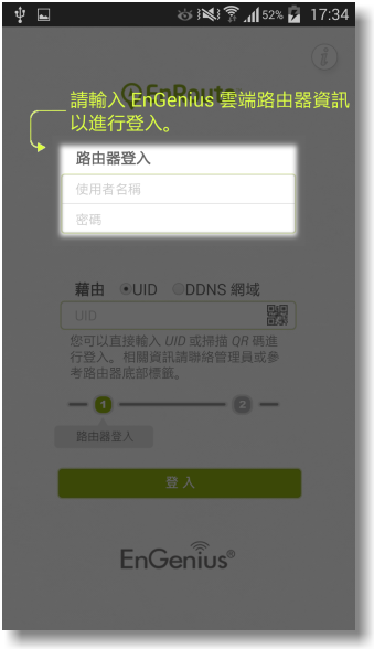 ▲這時透過行動裝置下載《EnShare》APP,並且使用EPG5000底部的資訊登入