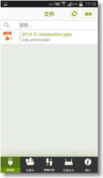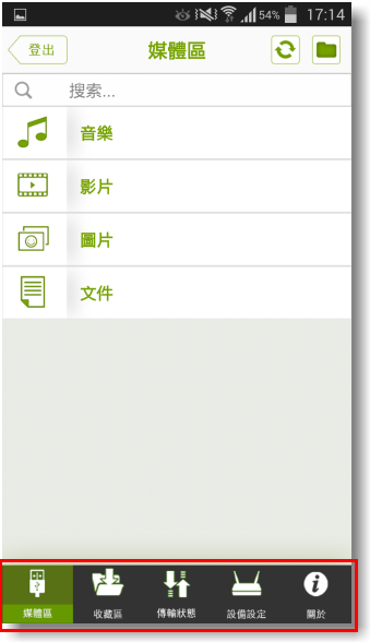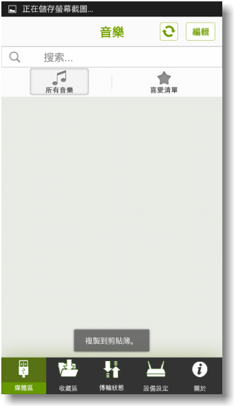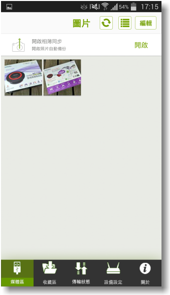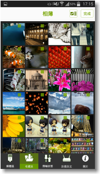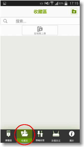 ▲在第二個功能區是『收藏區』,其實是可以把手機內的相片檔案上傳至USB儲存媒體中