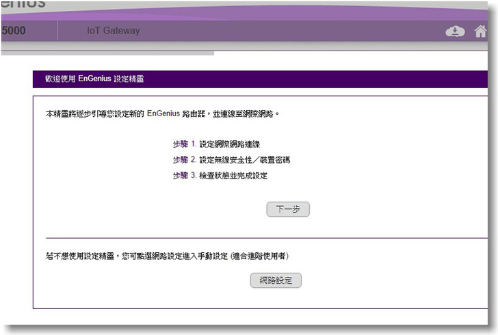 ▲《設定精靈》可以進入EPG5000的設定頁,使用者可以選擇上半部的引導進行快速設定,或是下方的手動設定