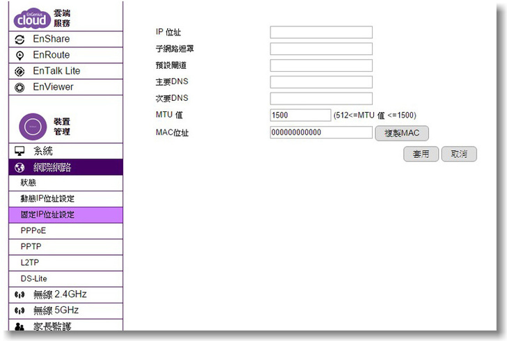 ▲『固定IP位址設定』可讓網路服務提供商要求使用固定IP位址設定,就在這裡設定。
