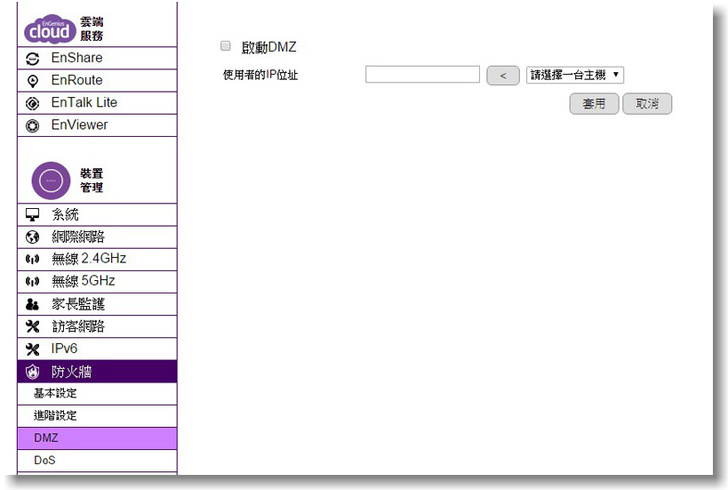 ▲『DMZ』直翻是非軍事區,當開啟DMZ功能後,會將所有的通訊埠轉送至內部網路的特定使用者。DMZ 的目的是當伺服器遭受攻擊時,要確保公開可存取的伺服器不能聯絡其他的內部網路區塊。
