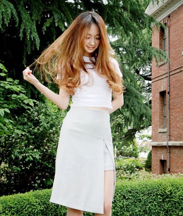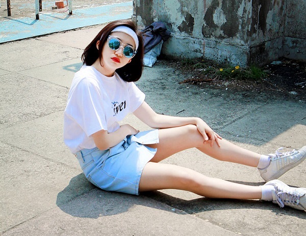 將高腰裙跟髮帶的顏色選擇相同的做搭配