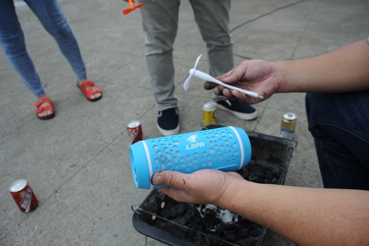 指揮艇就這麼給他組合了,藍芽喇叭搧風點火器組合完成。