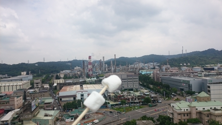 就以烤熱的棉花糖,以煉油廠為背景乾杯,cheers!
