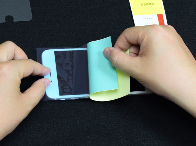手機貼膜時,最怕的就是有灰塵,所以貼膜時請盡量在灰塵少的地方進行,建議在桌面光滑乾淨、周圍不起風、身邊沒有人走動的房間內貼膜,盡量避免會揚塵的環境,以免貼保護貼時灰塵沾到螢幕上,會大大影響貼膜成功的機率。