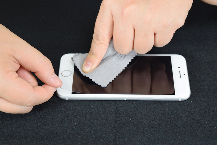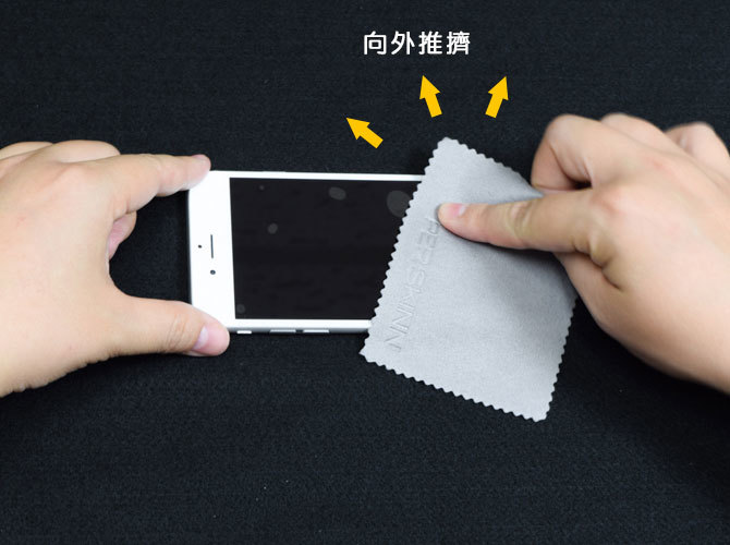 使用拭鏡布將螢幕表面多餘的酒精擦乾,順便清除酒精棉片沒有擦拭掉的灰塵。