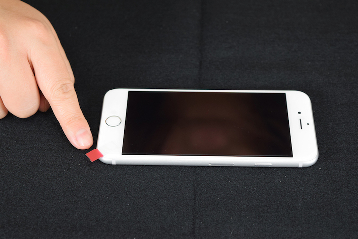 撕開藍色靜電除塵膜,平貼在手機,將螢幕上的細小灰塵、細毛黏起來。大致上清除乾淨後,可將除塵膜捲起,用輕貼的方式黏起螢幕邊緣的小灰塵、雜物。