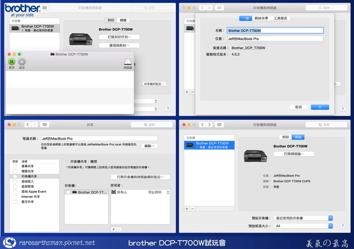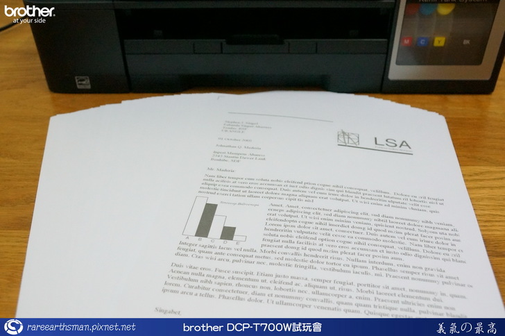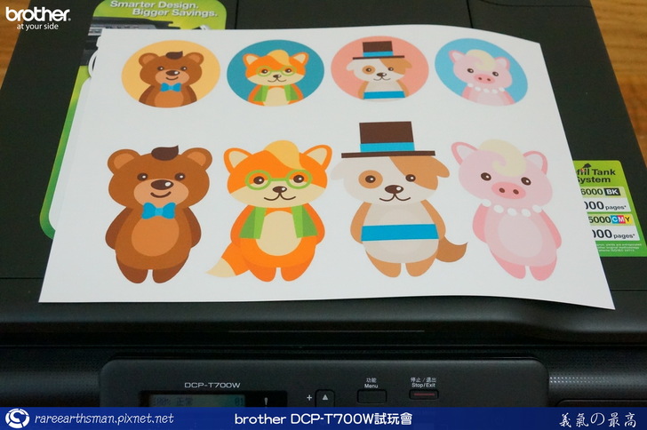 總結來說,我們一家人對於這台brother DCP-T700W噴墨複合機的表現都很滿意,顏色滿亮麗的, 印刷很細緻,除了列印又可以掃描,又有大容量的墨水槽,使用上又很方便,體積不大,放在家 裏很多地方都有空間置放,表現的真的很不錯。