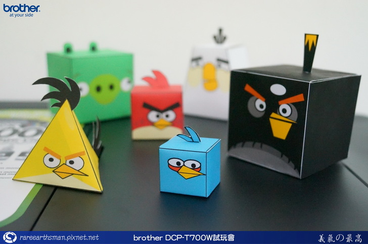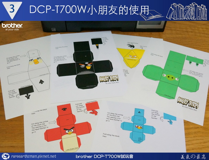 ▲DCP-T700W複合機也有一些好玩的應用,列印紙模就是一件跟小朋友可以有很好互動的活動,因為小朋友還小只能做些簡單的東西,所以就上網下載了簡單版憤怒鳥的紙模,當然T700W很襯職的列印出高品質的紙模出來。