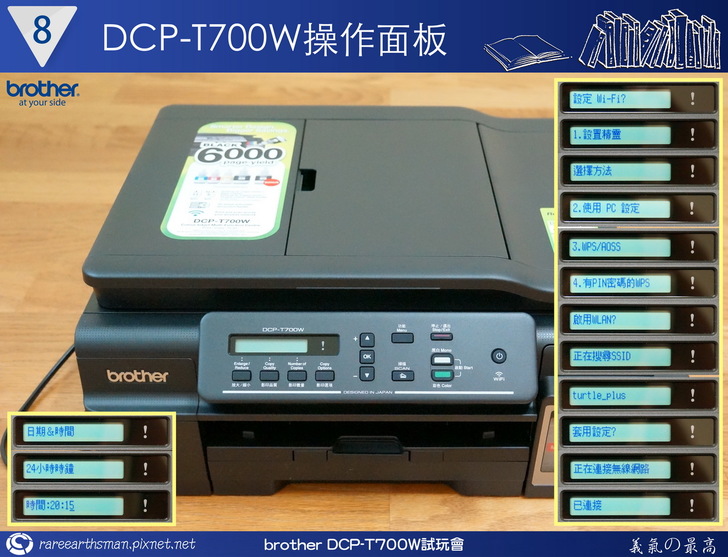 ▲DCP-T700W面板的初步設定,包括時間與Wi-Fi設定。