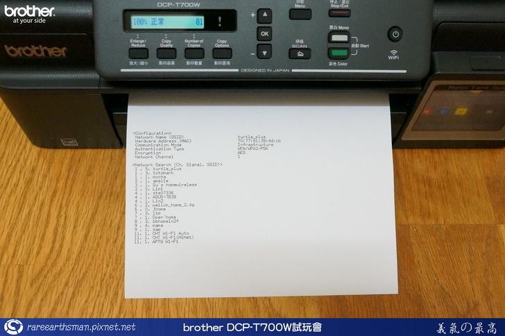 ▲DCP-T700W的Wi-Fi連接完成後,T700W會列印連線連接的資料。