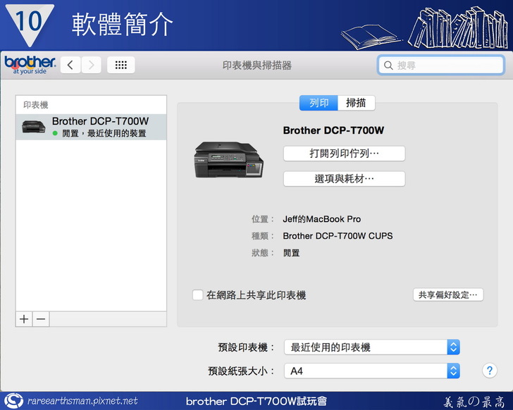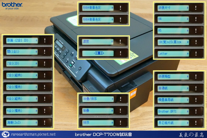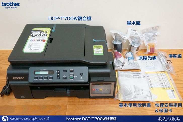列表機其實算是一個滿成熟的市場,美系、日系與韓系的品牌列表機數目都滿多的,超強的功能搭配便宜的主機,到底廠商要賺消費者什麼錢呢?是賺服務還是賺墨水?可能都有,連八德路到處都有看到幫人罐墨水就知道這有多好賺了,但進來的,以前近來大都是水貨啦或是有經銷商特別引進一小批的模式,數量都不多;但是這幾年來原廠進來台灣市場後推出了滿多、各種功能、各種價格的產品,消費者可以選擇得更多了;而這次brother台灣引進的DCP T700W的產品,標題的大容量、省錢、免改機與45度注墨等功能,想要搶進中小型的商業列印市場,有幸得到這次機會,就讓本人好好的體驗一下吧
