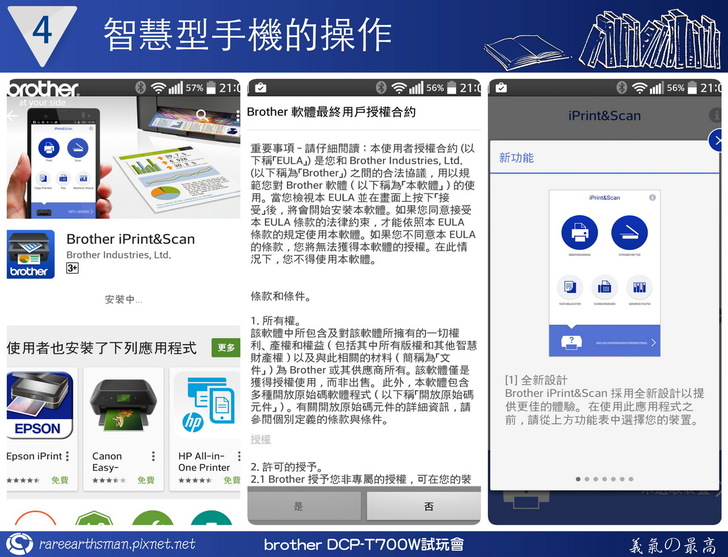 ▲DCP-T700W複合機也同樣搭上了智慧型手機的風潮支援了mobile的列印;只需要上app store或google play搜尋Brother iPrint&Scan就可以免費下載.