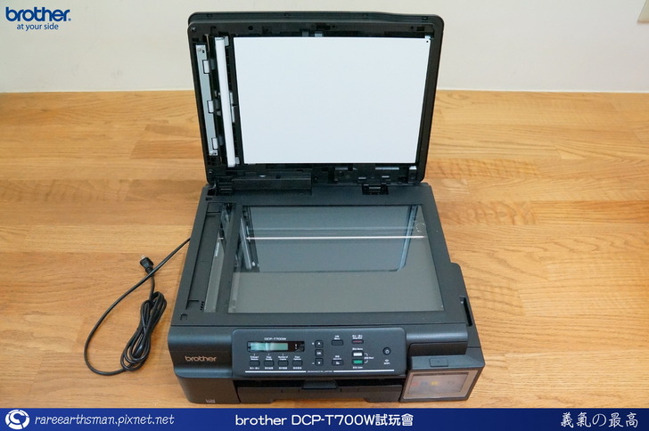 ▲DCP-T700W的掃描器頂蓋開啟狀況。