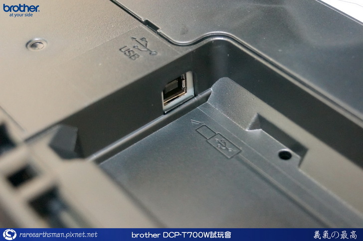 ▲DCP-T700W的掃描器頂蓋開啟之後也可以找到USB孔,規格上是USB1.0 Type-B的連接器,透過原廠的傳輸線可以連接到電腦。