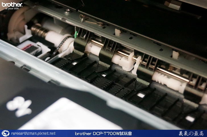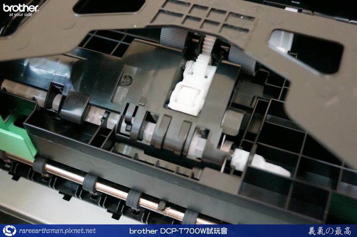 ▲DCP-T700W下方負責進紙的滾輪與結構。