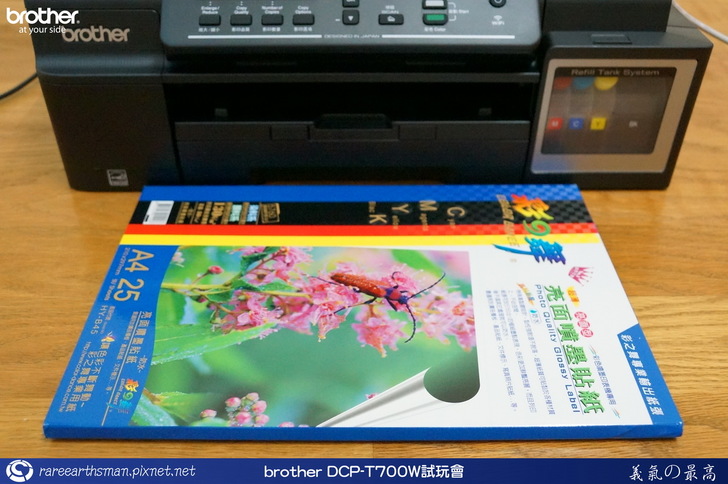 ▲剛好家裡還有一些亮面的噴墨貼紙,那當然要拿出來試用啦,T700W的紙匣也很順利的抓到了紙張可以列印啦。