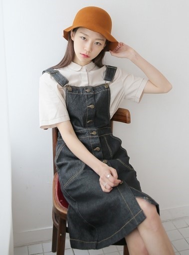長版的吊帶單寧連身裙是可以選擇的單品