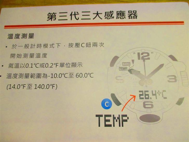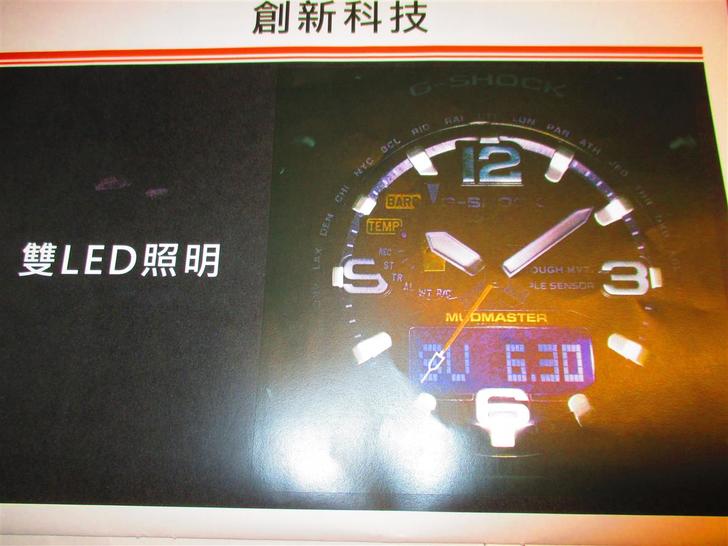 當你離開有光環境好一陣子之後,錶盤上的夜光顯示應該已不具效果,這時可以按下錶身右上的按鈕來啟動「高亮度LED」,GPW-1000的LED亮度比上一次測試的GWN-1000還要強上許多,在無光環境下錶盤上的資訊也可以一覽無遺。
