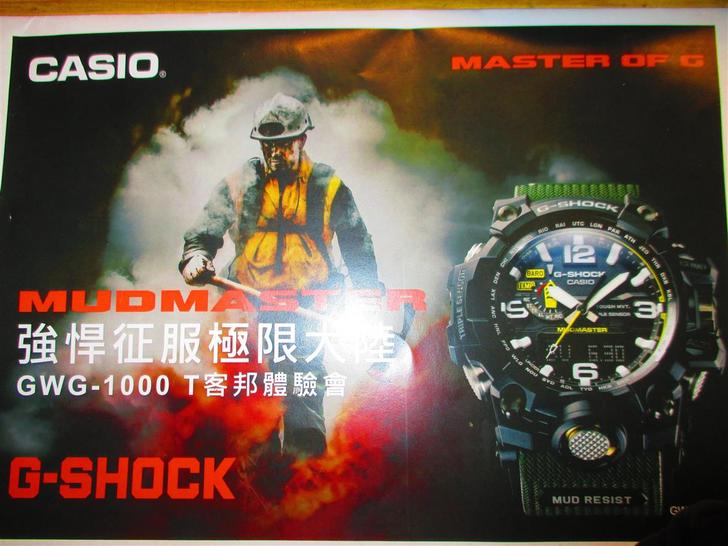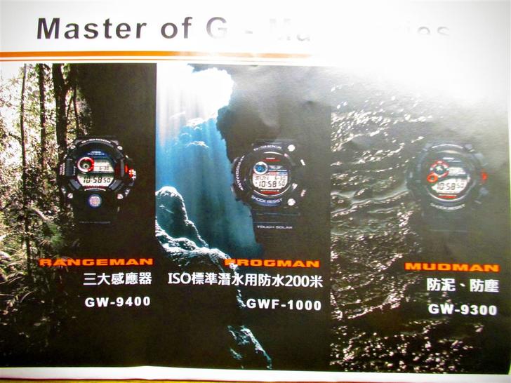 全新系列G-SHOCK MUD MASTER 的GWG-1000,以”極限大陸”為開發概念,功能按鈕採用防塵、防泥設計,即使於塵土飛揚的沙漠或身陷泥濘的大雨中也能操作各項功能,加上為了對抗顛簸的極限陸上環境,機芯包覆αGEL材質形成抗震動結構。除此之外,還搭載了三大感應器,方位羅盤可協助使用者辨識精確方位,氣壓/溫度感測可幫助掌握氣候狀況,高度感測可提供了解環境資訊,相信會成為喜愛探險的首選錶款阿。不知道當兵的環境會不會有點大材小用。