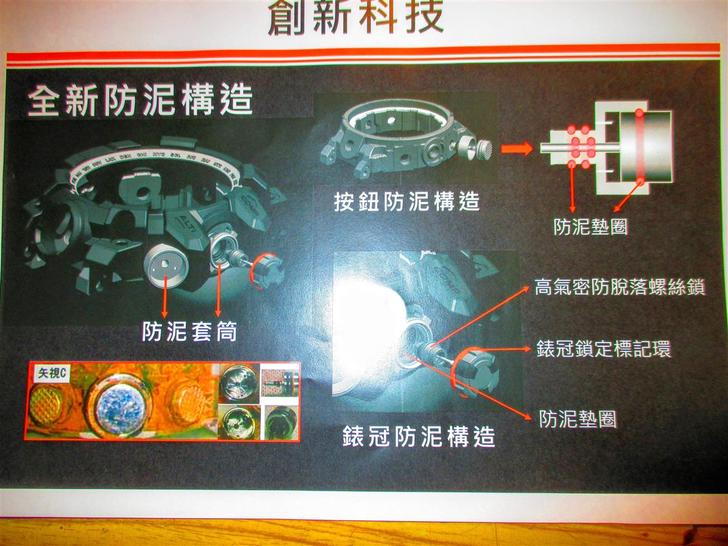 圓柱形的保護結構採用所有按鈕和圓筒形鍵軸配有密封墊襯。 這種結構不僅可以防止入侵的灰塵和泥土的按鈕,但它也有助於減輕衝擊。 冠也由一個高度氣密螺釘鎖緊式結構的保護。 墊圈被安裝在那些點冠滿足的情況下的表面,以保證到灰塵和泥土優越的抗。