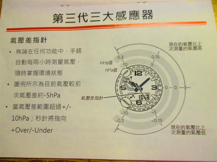 錶盤上的指針有加入夜光塗料,在暗處會自動發光,但只要離開光線過久這類的夜光漆也是有時效性的,太久未受光的話還是無法辨識的,這點各位要留意。從側面看去你可以發現GPW-1000的錶盤結構不僅複雜也非常的立體,錶盤環採用橡膠材質,藉此讓錶身更為輕盈,再來加入奈米製程技術讓錶盤上的圖案、線條都更為清晰,另外GPW-1000在鏡面更選用了藍寶石水晶玻璃,除了比一般強化玻璃耐刮之外,同時還加入不反射鍍膜,隨時讓你可以掌握錶盤上的資訊。