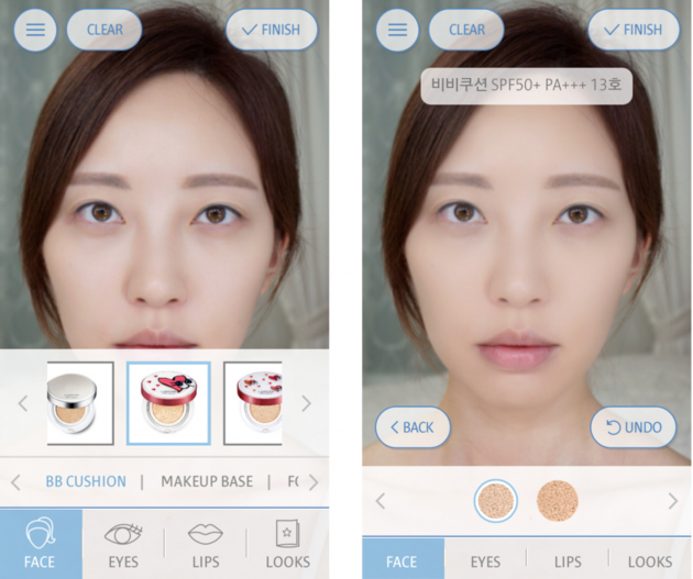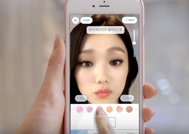 而最近韓國彩妝蘭芝更進一步推出了試妝APP