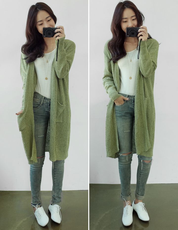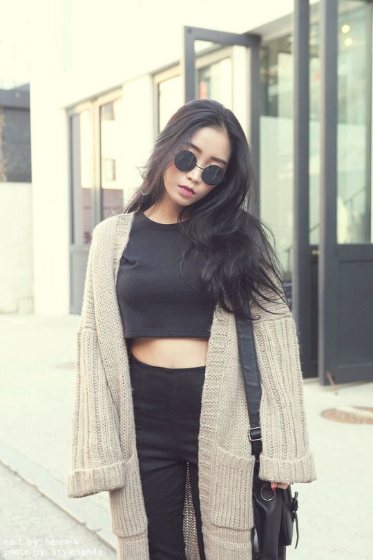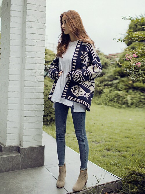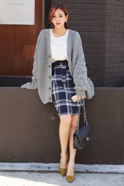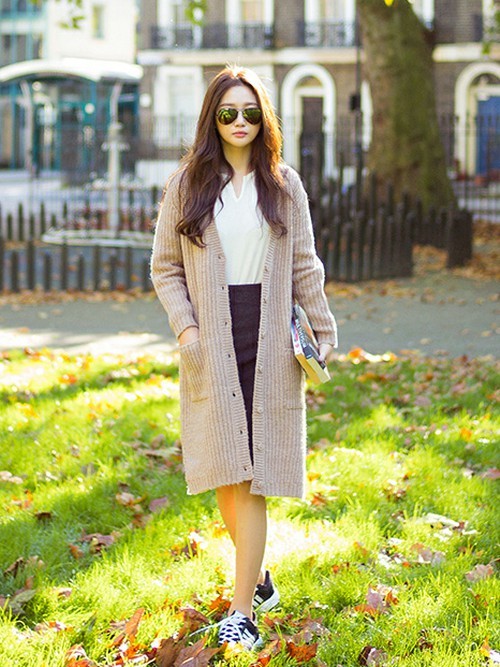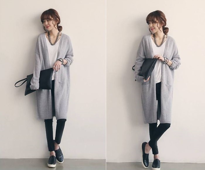 手上再拿著一個仿皮材質手拿包,就是隨意率性的韓妞風格