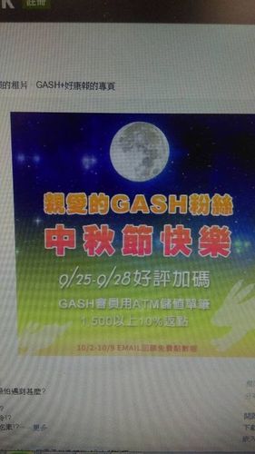 剛剛逛粉絲頁發現GASH也有中秋活動,抱歉圖是用手機拍得有點不太清晰。