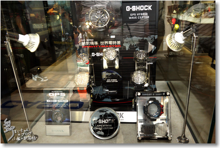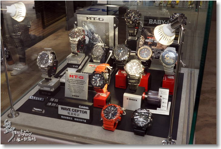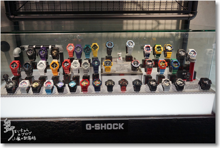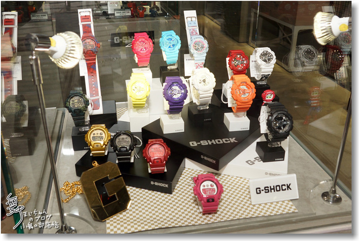 ▲離開門口後往牆面看,第一櫃是合各式的『G-SHOCK』,如GD-X6900系列和G-LIDE等等