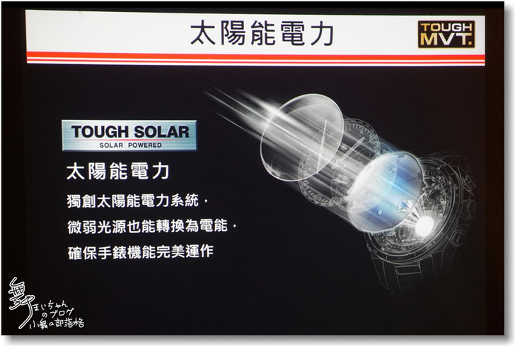 ▲另外的功能也支援《太陽能電力 TOUGH SOLAR》,太陽能面板藏在錶盤下,這是CASIO獨創的電力系統,就算是微弱的光源也能轉換為電能。