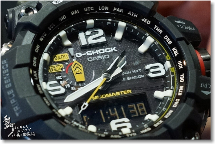 GWG-1000是今天的主角,標榜的是以「極限大陸」為開發概念,所以防泥、防塵和第三代三大感應器加持下,可說在險峻環境下完全輕鬆面對。不過在我日常環境會用到這樣的機會不多,但GWG-1000抓住我的不是這些強悍機能,而是充滿立體造形的外觀,容易判讀的錶盤,堅固耐用的錶體,感覺戴上GWG-1000,整個背景立刻換成欉林深山、惡水峭壁,整個人都熱血起來;如果說顏色搭配的話,相信熱愛戶外的人會選軍事墨綠,不過我這種都會型的人卻偏愛搶眼黑黃,出門應該會很引人注目吧(笑)。
