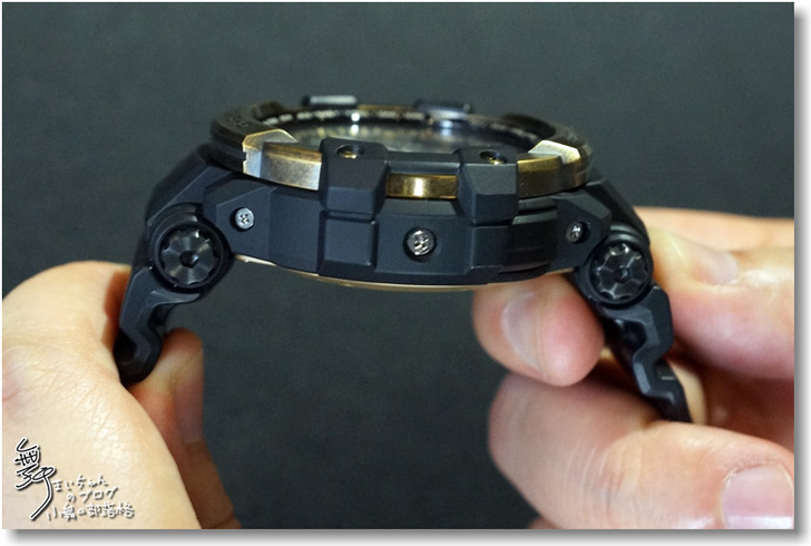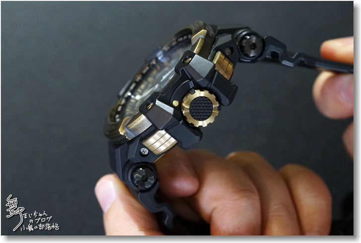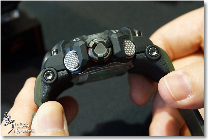 ▲GPW-1000的超大快鎖錶冠上下均附上鍛鑄的按鈕,且按鈕尺寸夠大,所以就算在惡劣環境或帶手套操作時也不會出現失誤的情形。