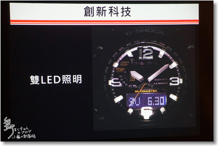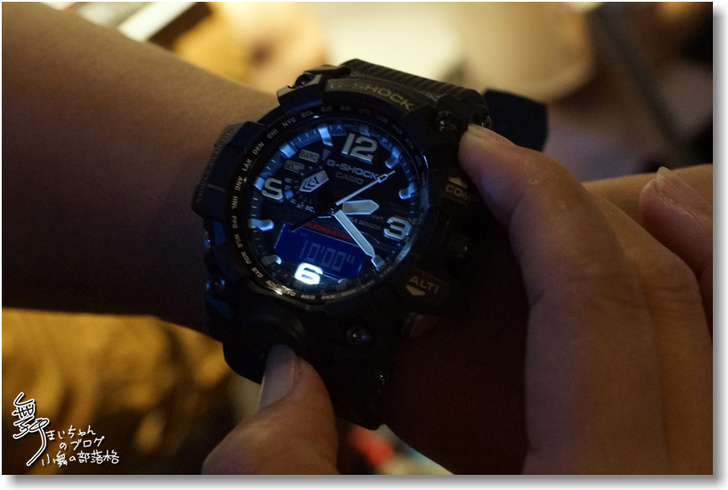 ▲另外在其它「創新科技」部份,GWG-1000採用了雙LED的照明,可以發現在6點鐘方向有一顆LED燈照亮錶盤與刻度外,另外液晶螢幕本身也具有冷光顯示。