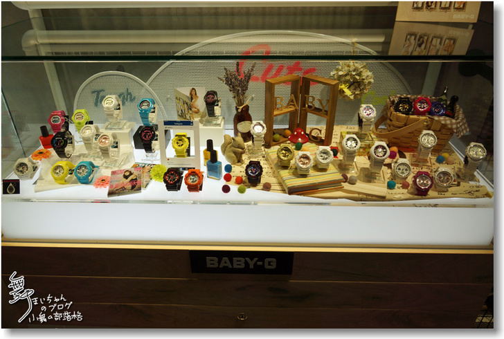 ▲這櫃是很Cute的『BABY-G』款,活潑青春有著各種色彩,玻璃櫃上方還少女時代所代言的海報款