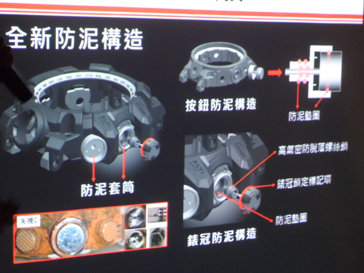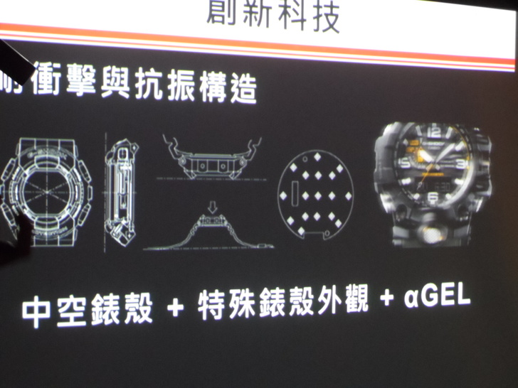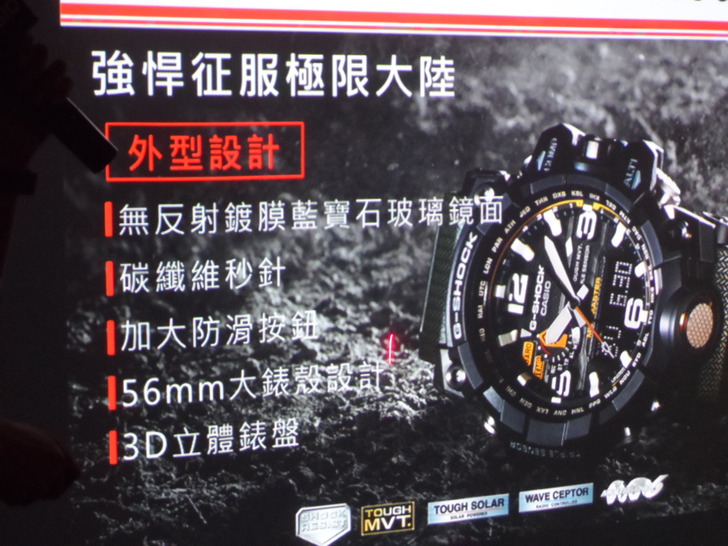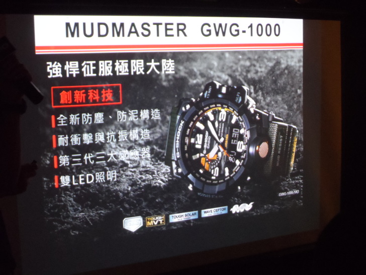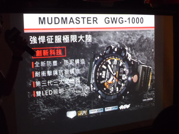 發表會開始以後,大家擠進小小的地下室,主持人藉著一張一張的投影片,詳細的介紹Casio G-shock Mudnaster GWG-1000 的各種功能,這邊就不得不佩服Casio的造錶工藝,他將所有的實用功能,全部擠進小小的手錶裡,舉凡
