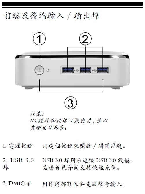 因為系統是windows再加上體積小低耗電的特性,所以他還有非常多元的用途,除了當作個人桌機使用以外,例如還可以當作家庭的雲端伺服器提供個人所需的網路服務或是影片串流、當作BT下載機、當作網路伺服器、播放展示機......等,甚至回沒有電腦不方便的老家,也可以放一台在鄉下,高貴不貴體積又小又可以滿足各式各樣需求,真是一舉數得!最後附上官方的規格表跟接孔說明。