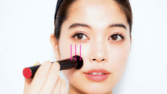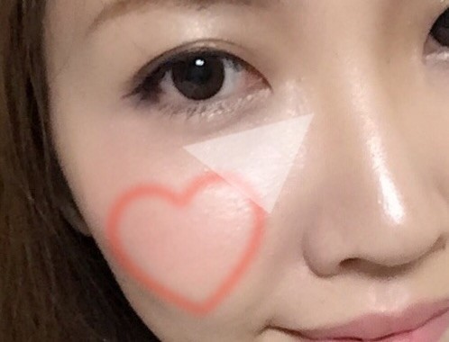再如上圖,以▼形狀打亮,看起來就會呈現自然的笑容妝感