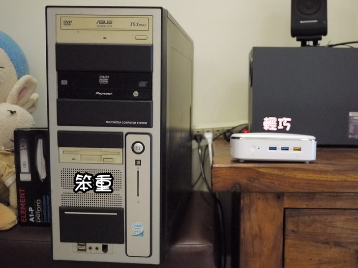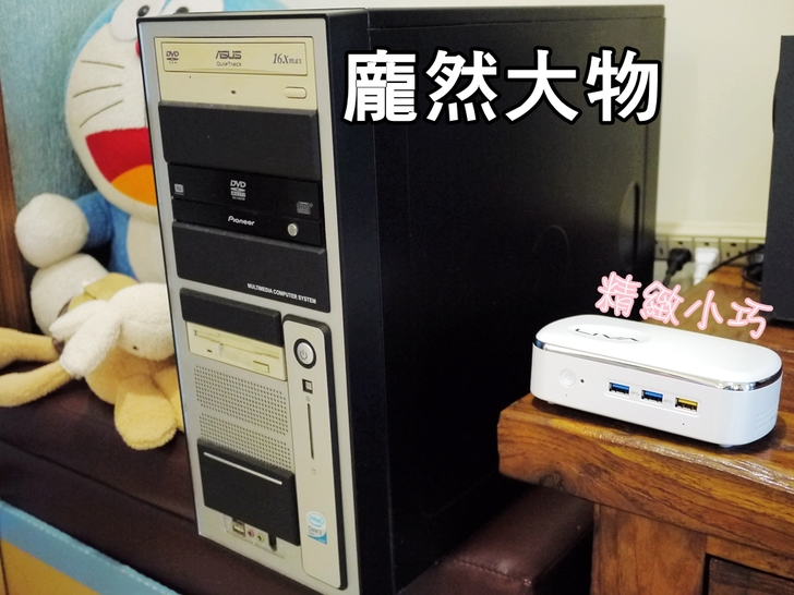 家裡的傳統式電腦主機與『LIVA X²』相比,一個有如龐然大物,一個是精緻小巧,所以之前都不太敢把電腦主機放在客廳,因為跟室內的裝潢設計有著很大的衝突,擺設起來也很不美觀。