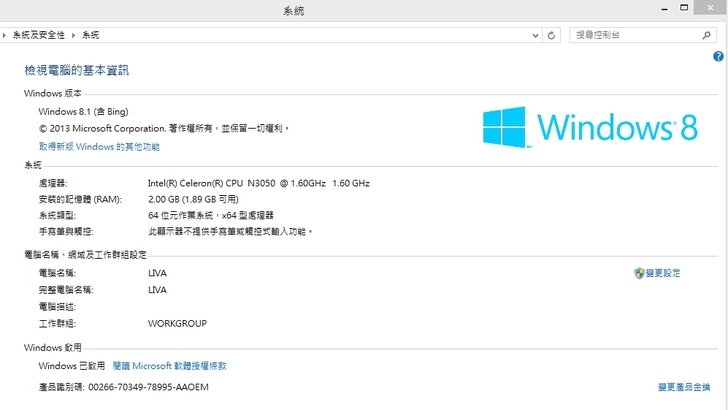 『LIVA X²』的基本資訊,這次試用的規格如下: