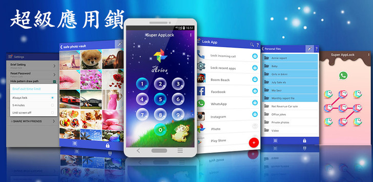 有了超級應用鎖,再也不用擔心隱私洩露了!免費,無廣告,隱私安全一個APP搞定!所以這款 App 鎖功能除了應具備的安全防護功能以外,還特別強化了一般安全軟體較不注重的美觀以及使用者的方便性。