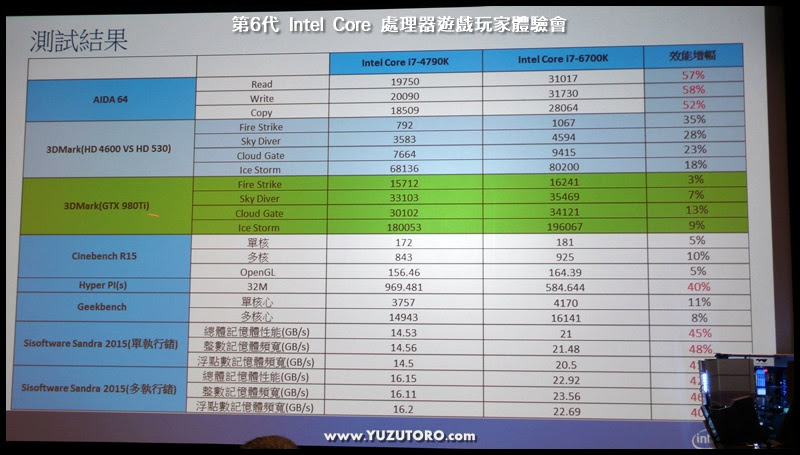 和上一世代先前台灣販售的中央處理器評測成績,從小幅度一成到幾近乎六成的效能增長。