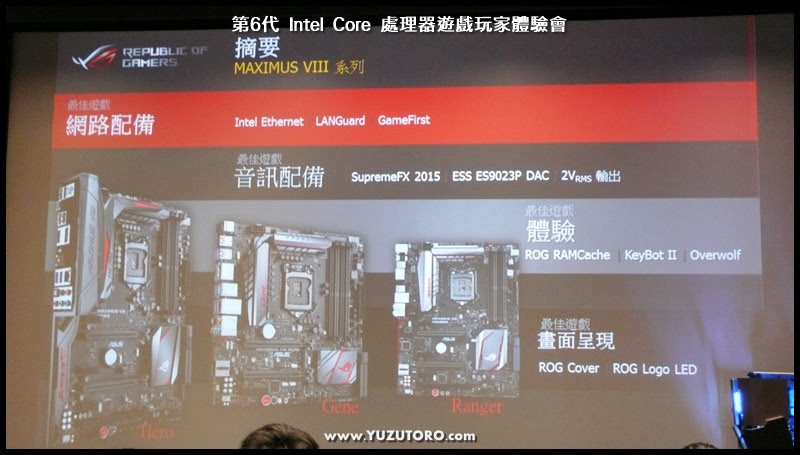 中場休息後這次講座搭配 第6代 Intel® Core™ 處理器的展示電競主機是華碩提供,所以則由其 PM Jeason 親自上場介紹產品定位以及功能…