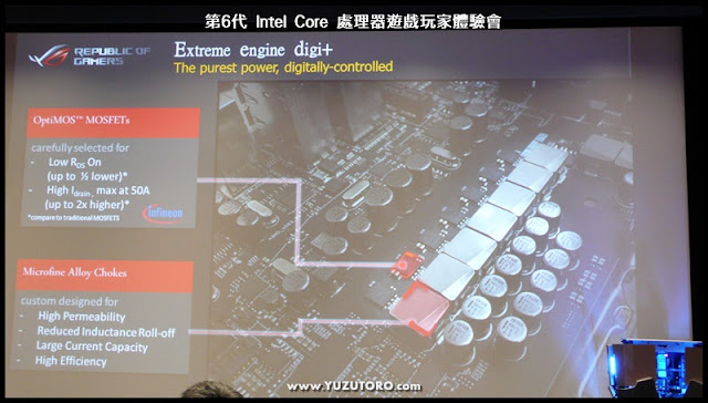 在 ROG 玩家共和國系列的標準配備之一,如今又再升級, OptiMOS MOSFETs 金氧半場效電晶體,Microfine Alloy Chokes 合金電感,由獨家 Extreme Engine Digi+ PWM 控制器確保提供最穩定的系統運行。