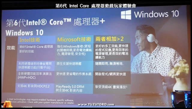 第六代 Intel Core 再加上本身就有支援 4K 影音內容的 Windows 10… 中央處理器搭配作業系統,硬軟裡應外合相互支援,相得益彰,不僅省電、效能提昇、速度快,亦俱備更高畫質的感官體驗。