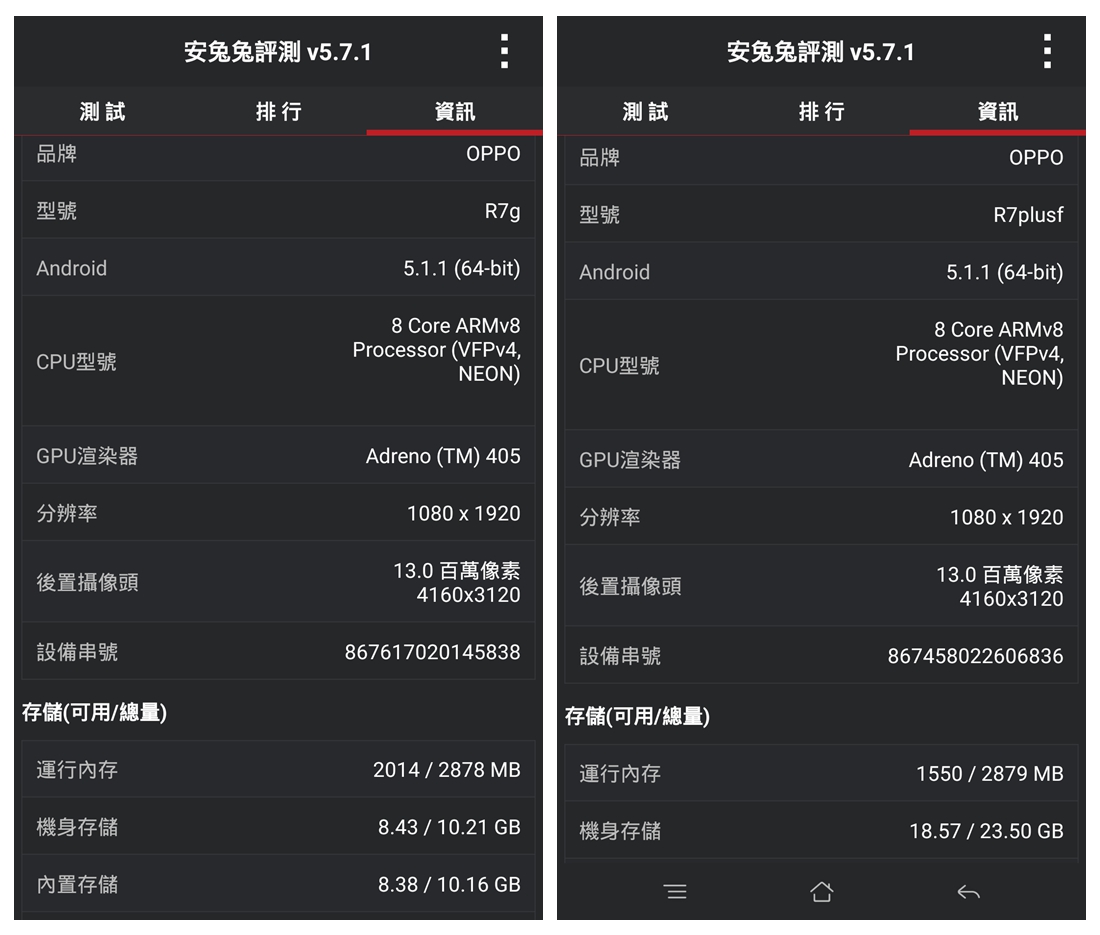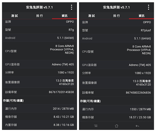 ▲ OPPO R7與R7 Plus的系統資訊。