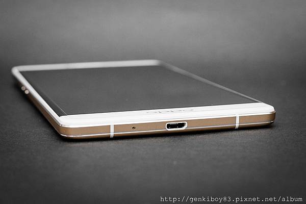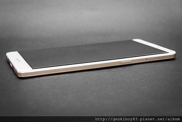 金色的 R7 Plus 的背後看起來真的有點像金條阿,上下因為考量到天線收訊的緣故,所以採用不同的材質製作,但顏色看起來不會太突兀