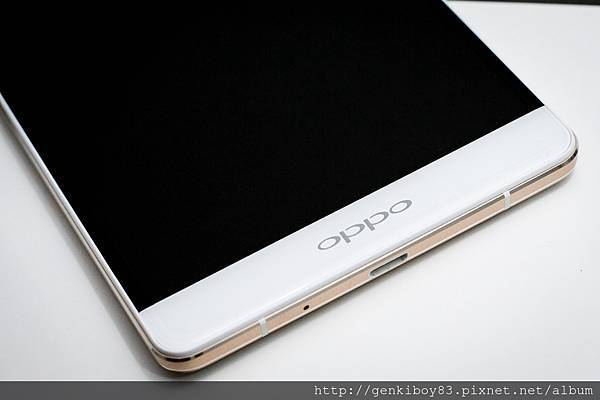 正面下方只有OPPO的商標,R7 Plus採用的是虛擬按鍵所以正面沒有任何實體或是觸控按鍵