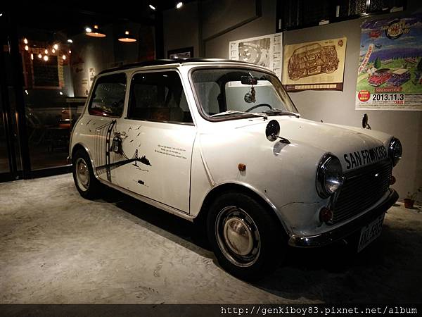 這家店的老闆是以前在美國的朋友,本身很愛骨董車,所以店面有擺著一台骨董mini,這台是真的可以開的喔!